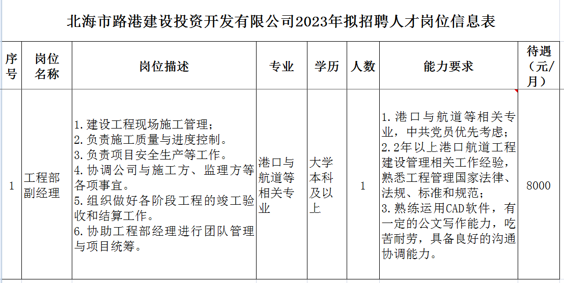 北海市路港建設(shè)投資開(kāi)發(fā)有限公司招聘簡(jiǎn)章